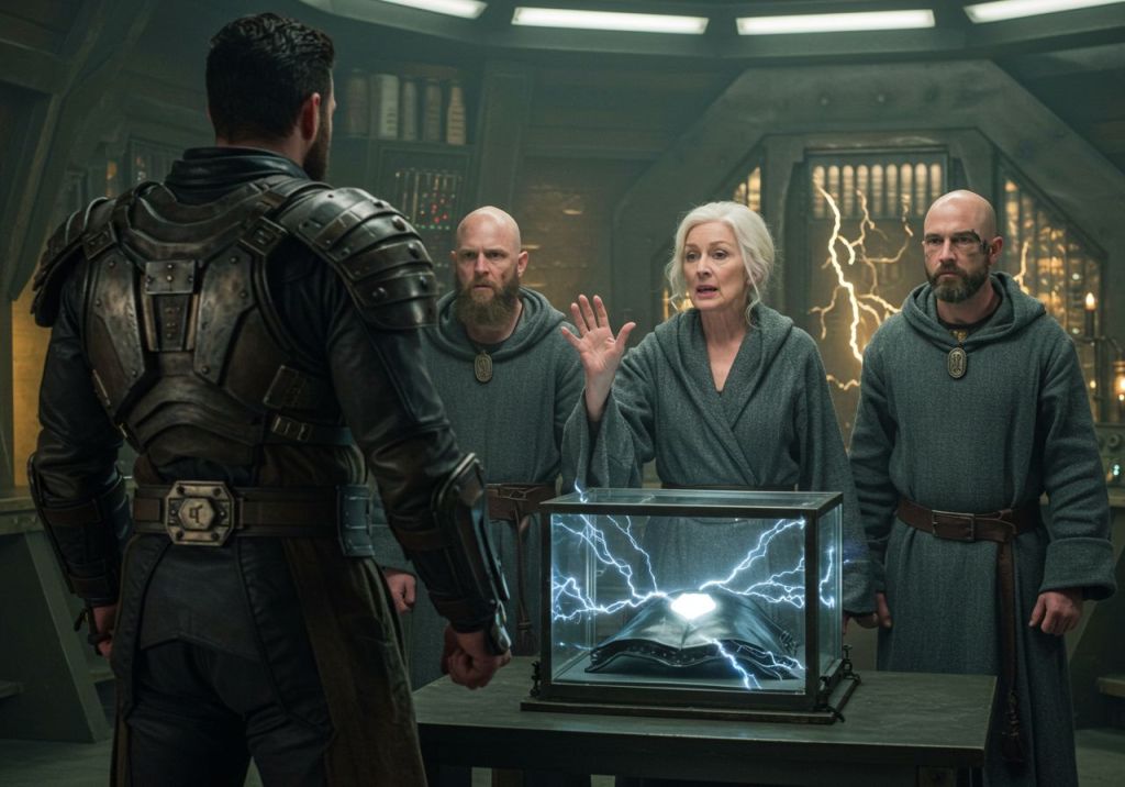 Kaelen ignored him, his hand falling to the hilt of the ceremonial plasma-blade at his side. “My men are dying on the frontier while you hide in your tunnels and play with metaphysics!” he roared, his composure shattering into a thousand pieces of pure fury. “They are being slaughtered by savages armed with our own technology! That weapon,” he snarled, pointing a gauntleted finger at the artifacts, “is their salvation! It is my right, earned in the blood and sacrifice of every soldier who has fallen under my command!”